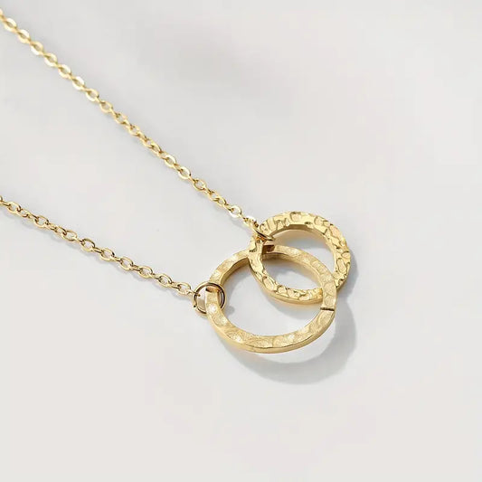 Edelstahl Doppelring-Anhänger Halskette - Schlichtes Geometrisches Design, Perfekt für Lässige Kleidung