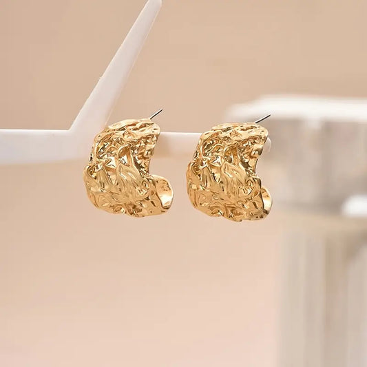 Elegante Geometrische C-förmige Creolen für Frauen - Gehämmerte Textur, Eisenmaterial