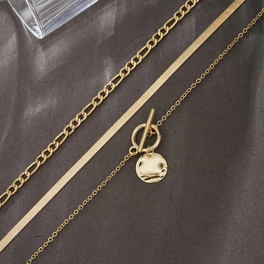 3-teiliges Halsketten-Set-Schlichte und dennoch schicke laminierte Schlangenkette mit Münzanhänger